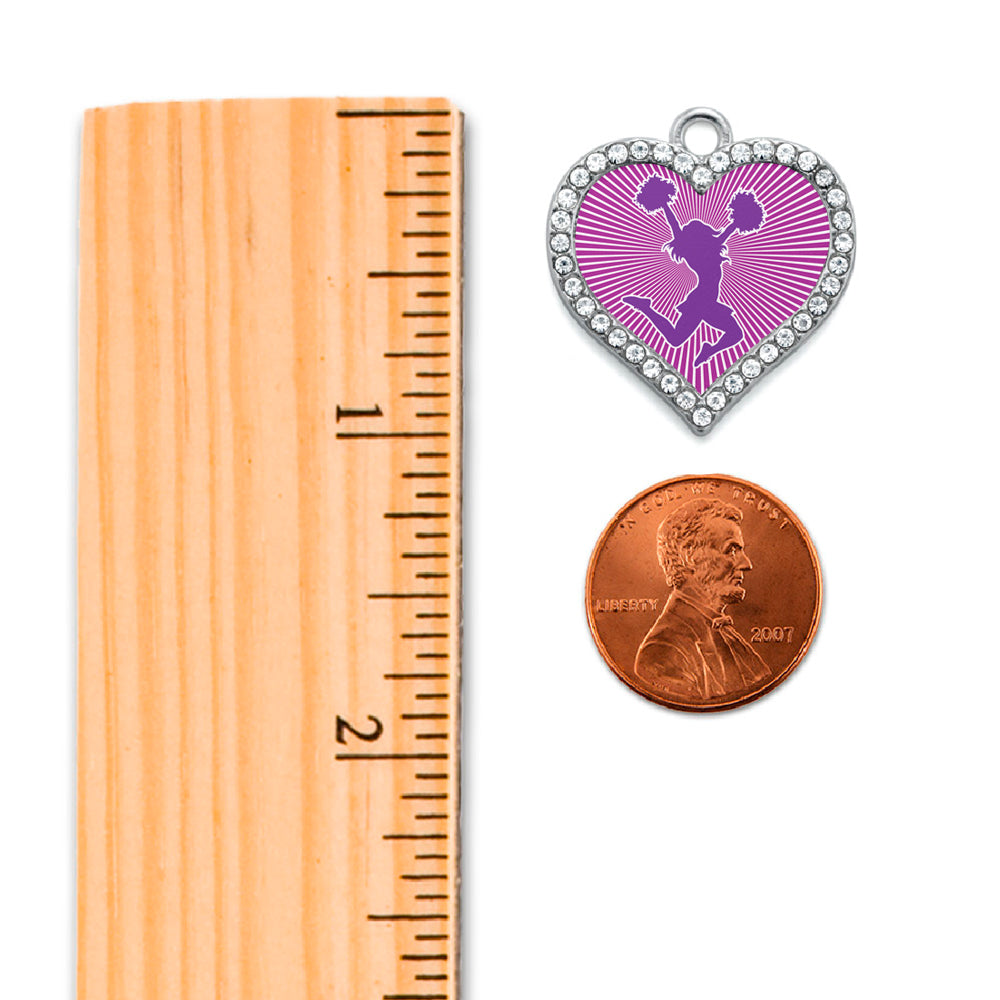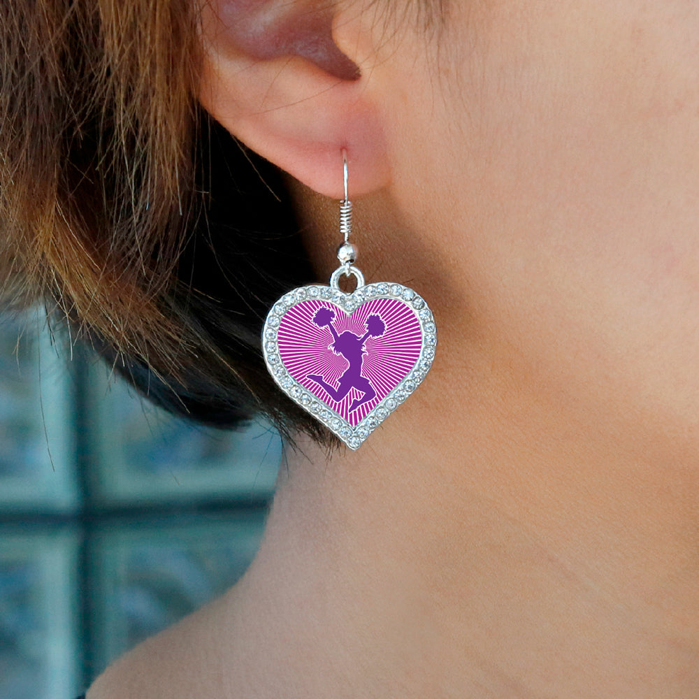 Silver Cheerleader - Purple Open Heart Charm Dangle Earrings