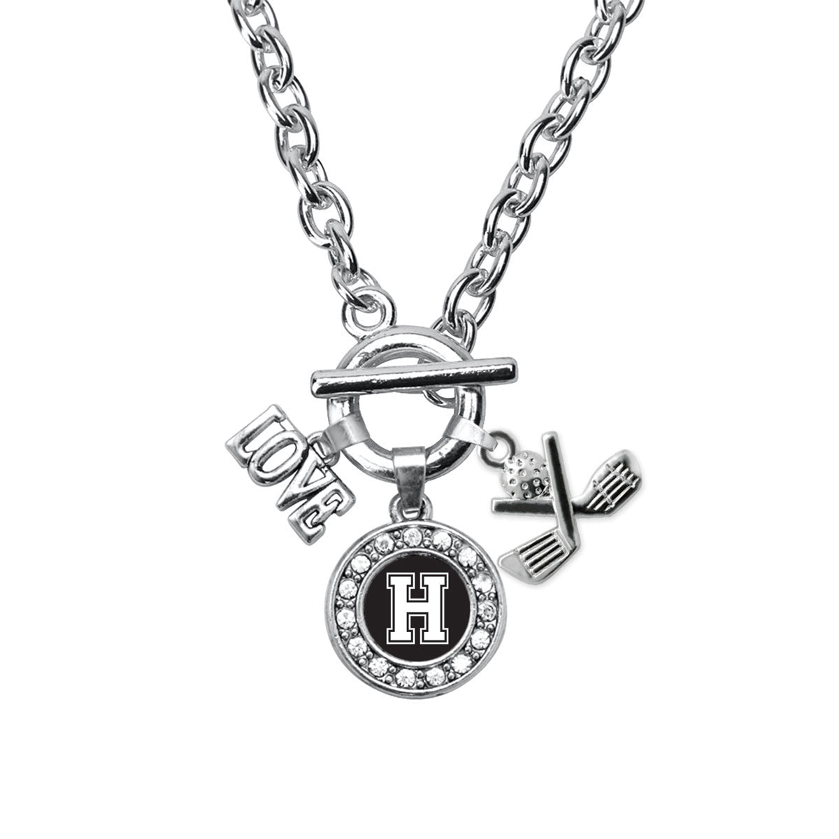 Silver Cheerleader - Sports Initial H Circle Charm Toggle Necklace