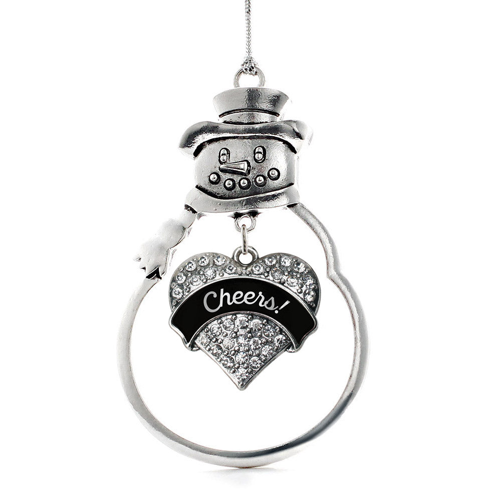 Our sparkling snowman ornament, equipped with a stylish silver rope and the Cheers! Black and Silver pave heart charm, is crafted from white metal with a silver plated finish and accented with cubic zirconia stones.