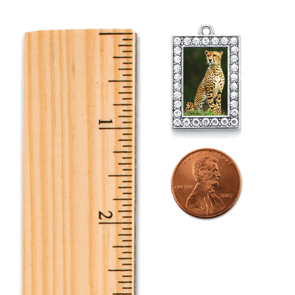 Our sparkling toggle necklace, equipped with a stylish toggle clasp and the Cheetah rectangle charm, is crafted from white metal with a silver plated finish and accented with cubic zirconia stones.