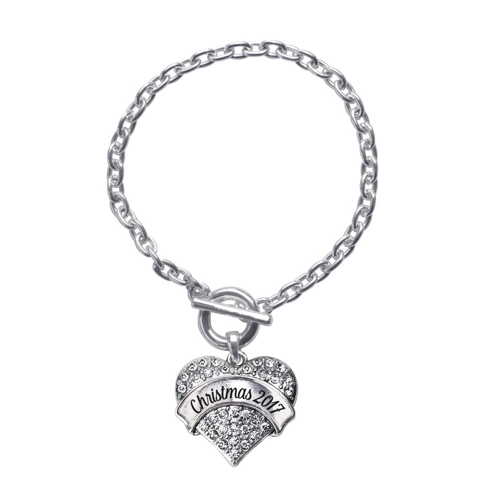 Silver Christmas 2017 Pave Heart Charm Toggle Bracelet