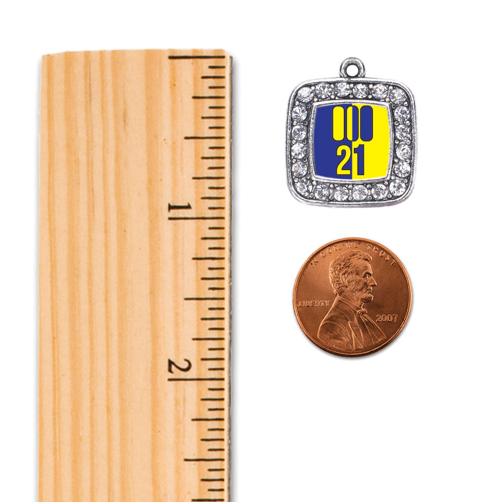 Our sparkling holiday ornament, equipped with a stylish silver rope and the Chromosome 21 square charm, is crafted from white metal with a silver plated finish and accented with cubic zirconia stones.