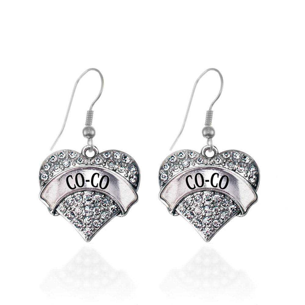 Silver Co-Co Pave Heart Charm Dangle Earrings