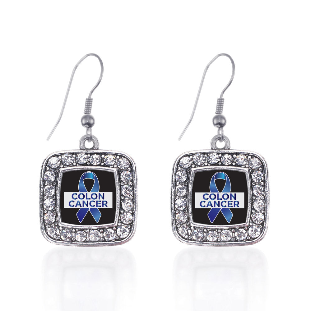 Silver Colon Cancer Support Square Charm Dangle Earrings