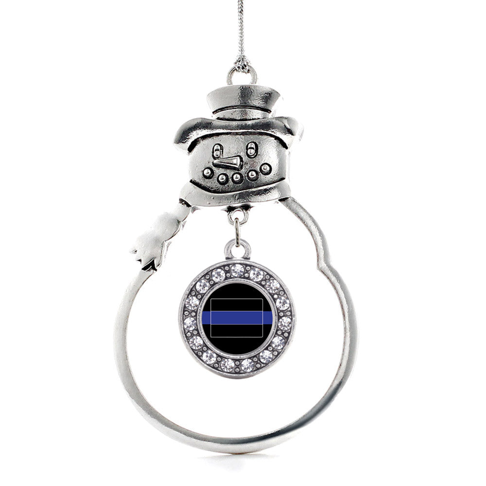 Silver Colorado Thin Blue Line Circle Charm Snowman Ornament