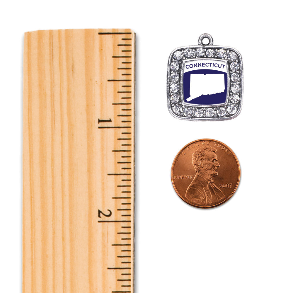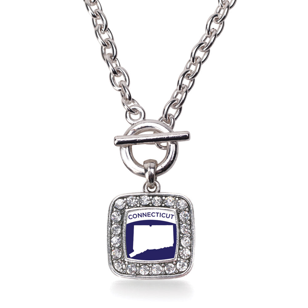 Our sparkling toggle necklace, equipped with a stylish toggle clasp and the Connecticut Outline square charm, is crafted from white metal with a silver plated finish and accented with cubic zirconia stones.