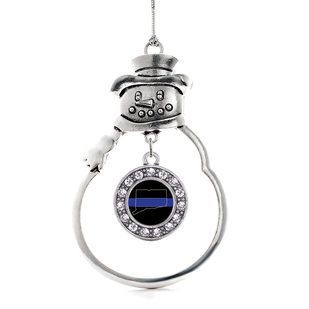 Silver Connecticut Thin Blue Line Circle Charm Snowman Ornament