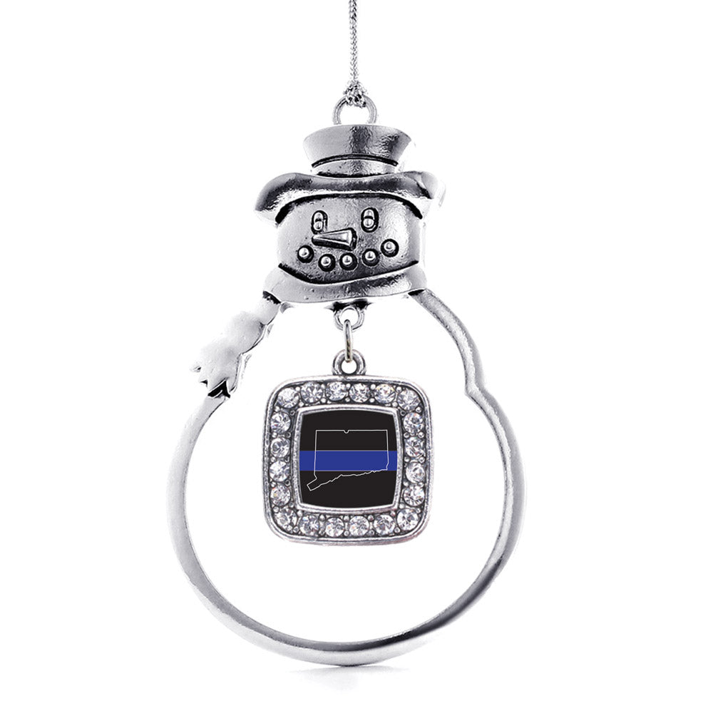 Silver Connecticut Thin Blue Line Square Charm Snowman Ornament