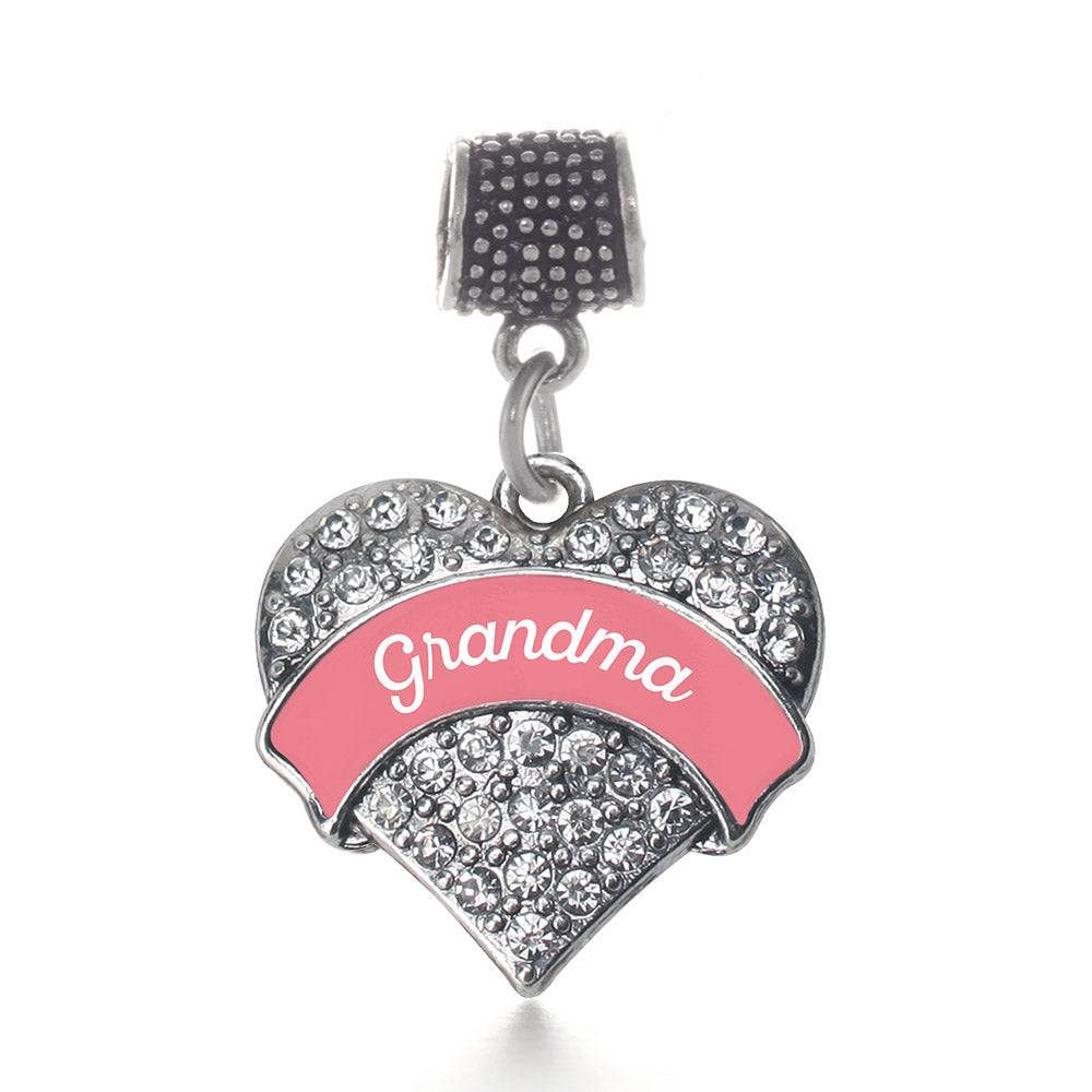 Our sparkling memory charm, equipped with a stylish charm attachment ring and the Coral Grandma pave heart charm, is crafted from white metal with a silver plated finish and accented with cubic zirconia stones.