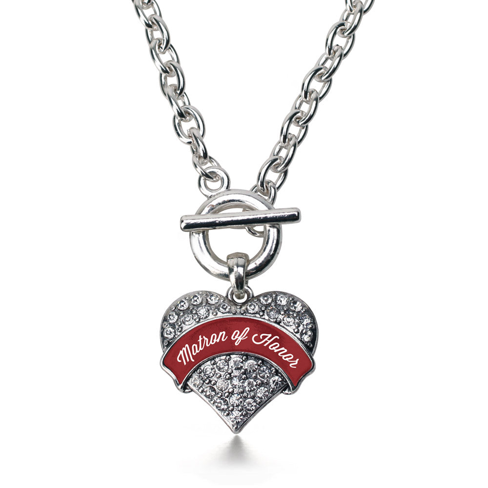 Silver Crimson Red Matron Pave Heart Charm Toggle Necklace