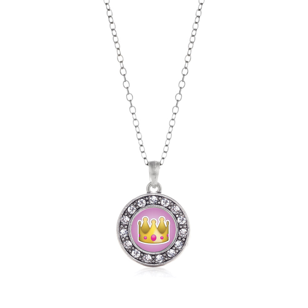 Our sparkling classic necklace, equipped with a stylish lobster claw clasp and the Crown Emoji circle charm, is crafted from white metal with a silver plated finish and accented with cubic zirconia stones.