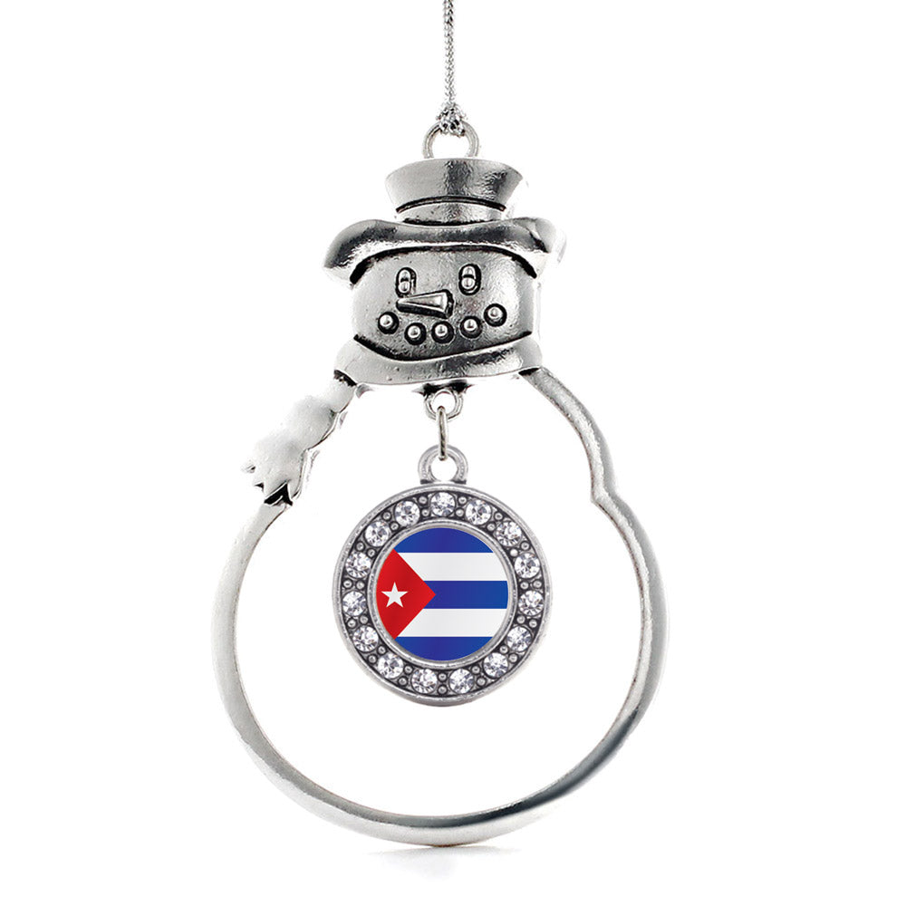 Silver Cuba Flag Circle Charm Snowman Ornament