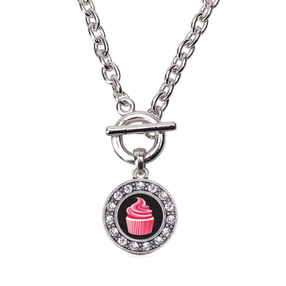 Silver Cupcake Lovers Circle Charm Toggle Necklace