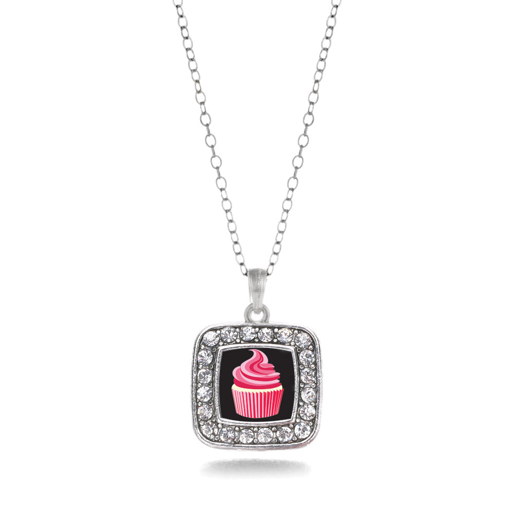 Silver Cupcake Lovers Square Charm Classic Necklace