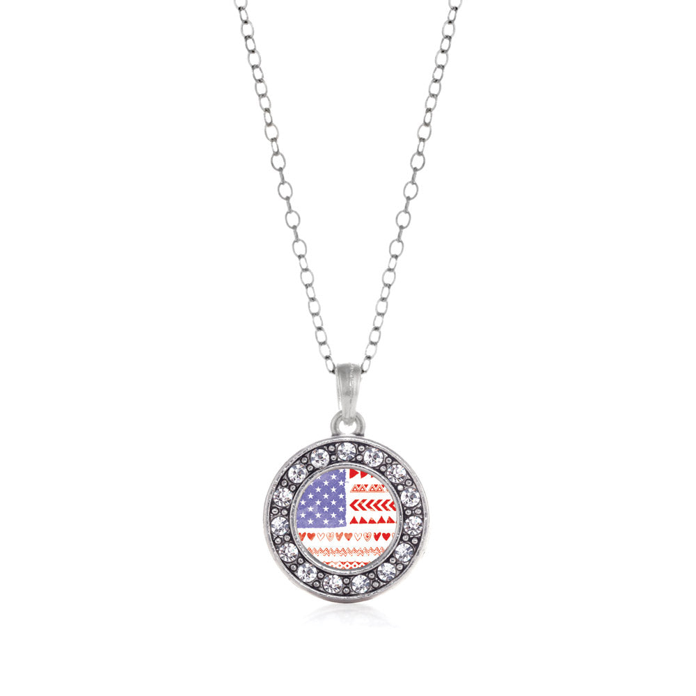 Our sparkling classic necklace, equipped with a stylish lobster claw clasp and the Cute American Flag circle charm, is crafted from white metal with a silver plated finish and accented with cubic zirconia stones.