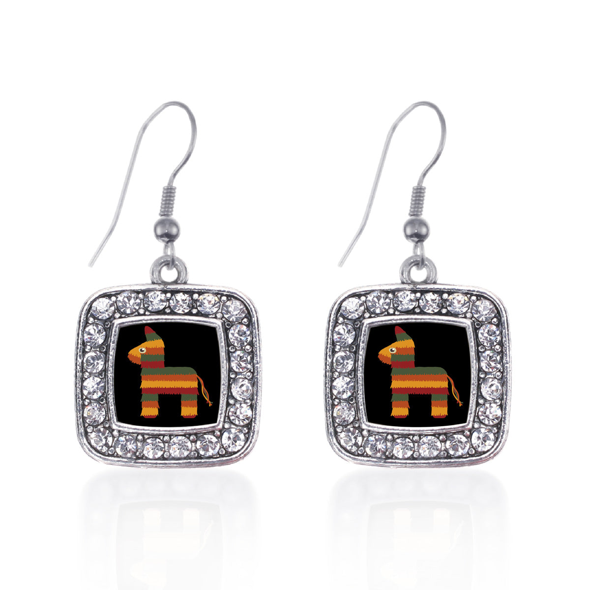 Our sparkling dangle earrings, equipped with a stylish french hook backing and the Cute Piñata square charm, is crafted from white metal with a silver plated finish and accented with cubic zirconia stones.