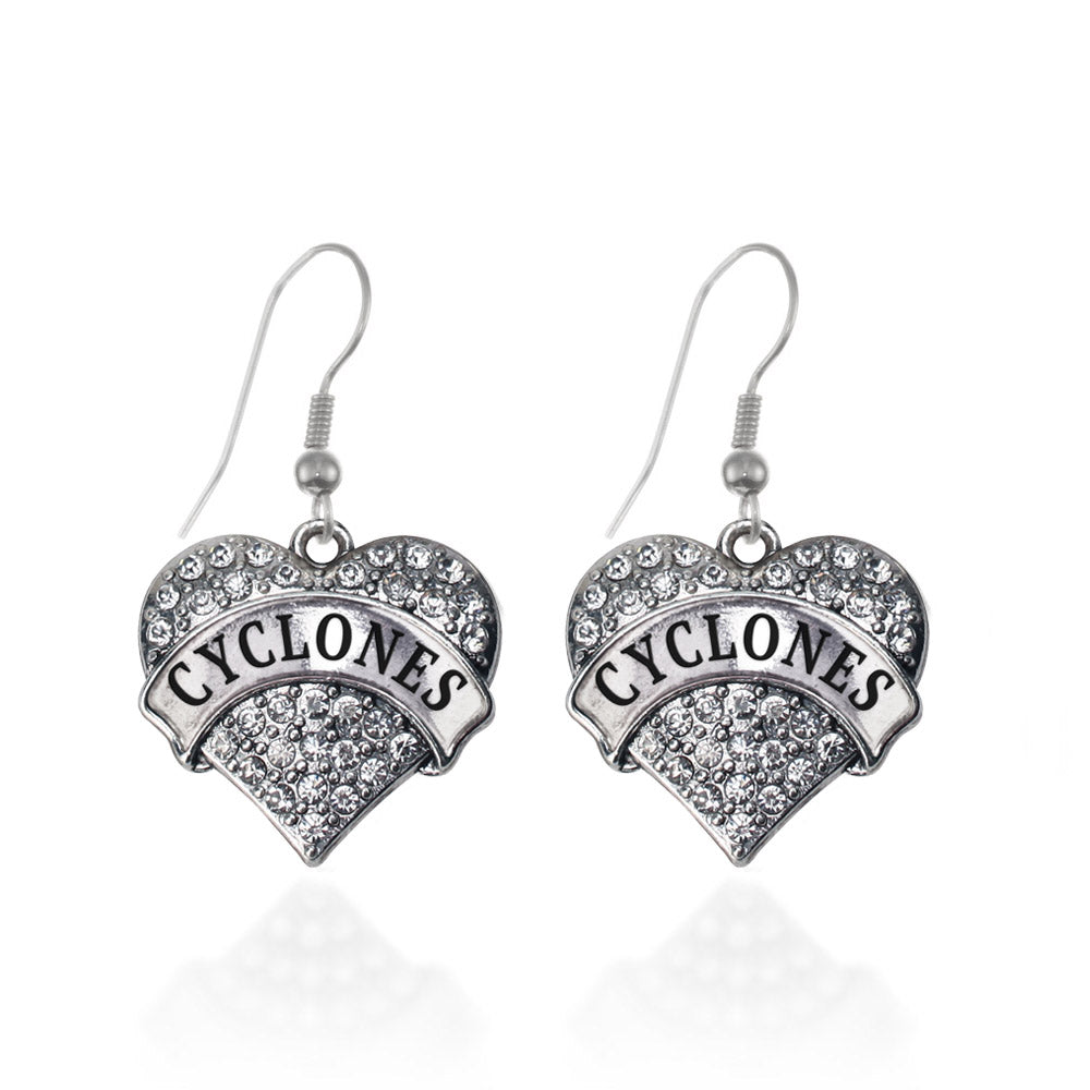 Silver Cyclones Pave Heart Charm Dangle Earrings