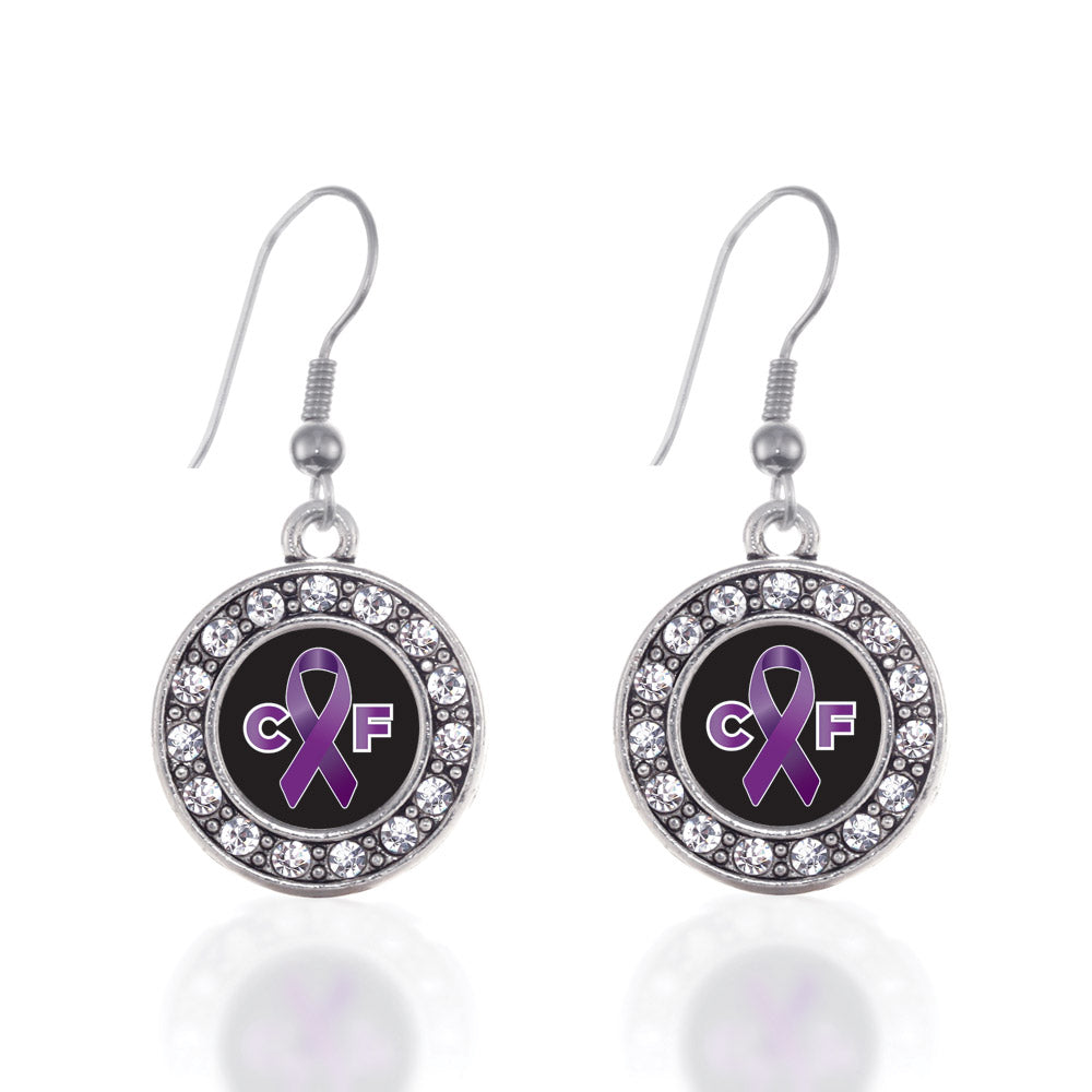 Our sparkling dangle earrings, equipped with a stylish french hook backing and the Cystic Fibrosis circle charm, is crafted from white metal with a silver plated finish and accented with cubic zirconia stones.