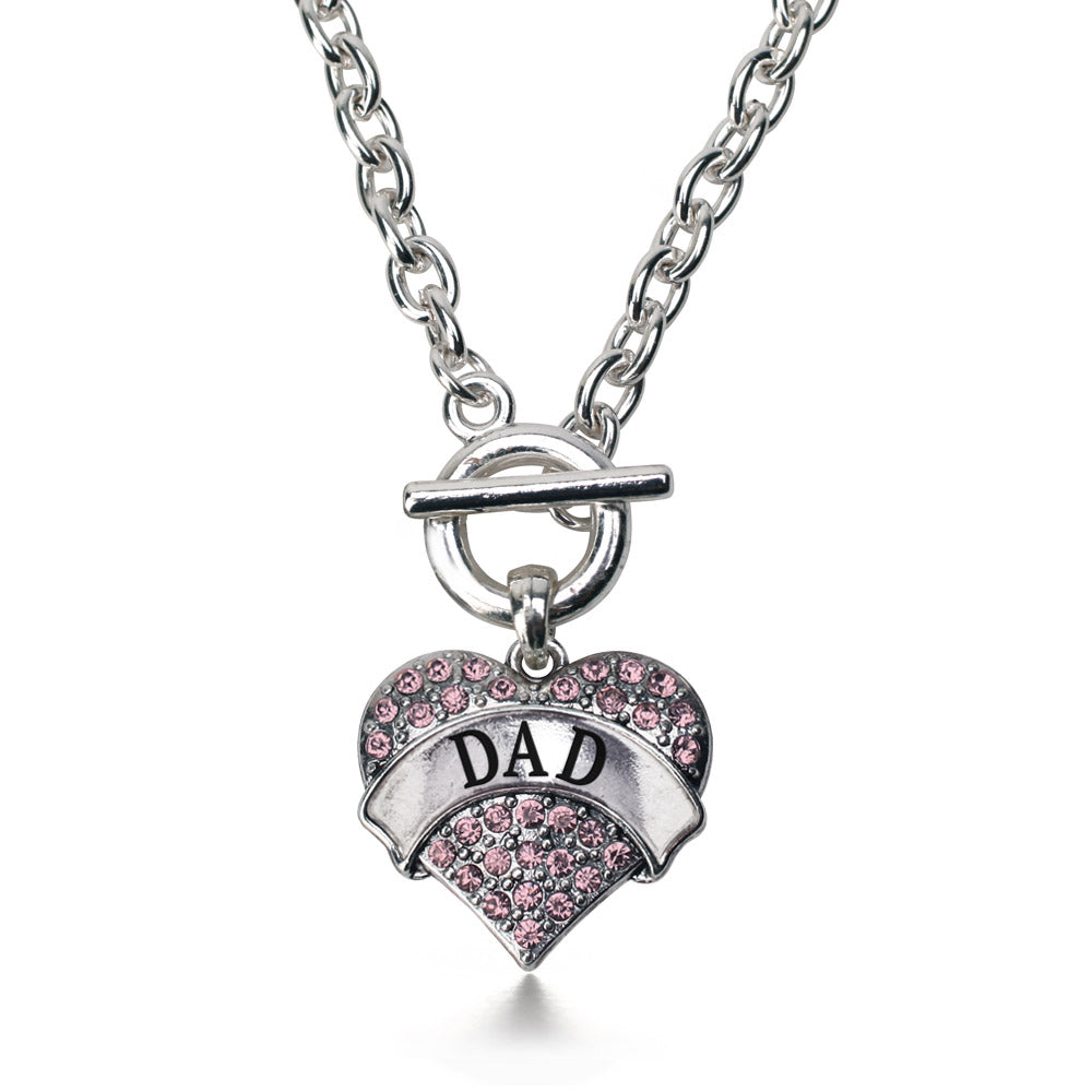 Silver Dad Pink Pink Pave Heart Charm Toggle Necklace