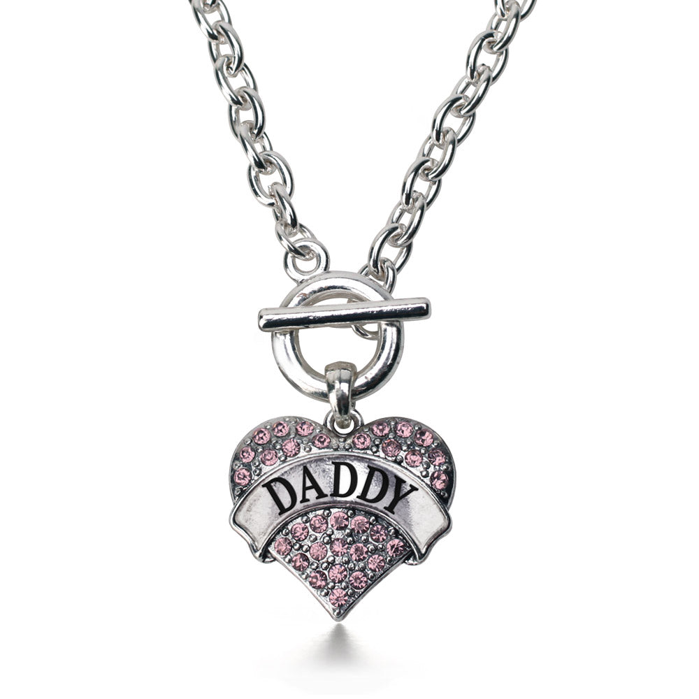 Silver Daddy Pink Pink Pave Heart Charm Toggle Necklace