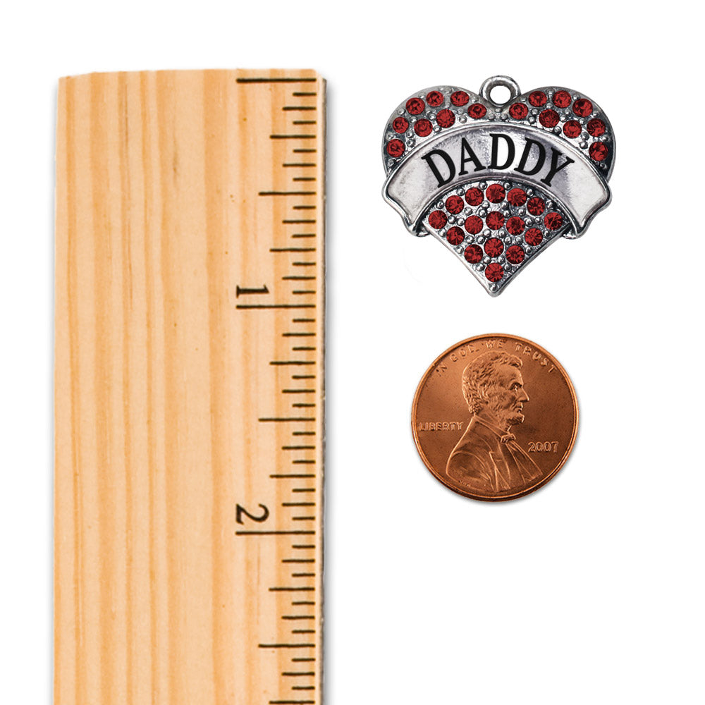 Our sparkling toggle necklace, equipped with a stylish toggle clasp and the Daddy Red red pave heart charm, is crafted from white metal with a silver plated finish and accented with cubic zirconia stones.