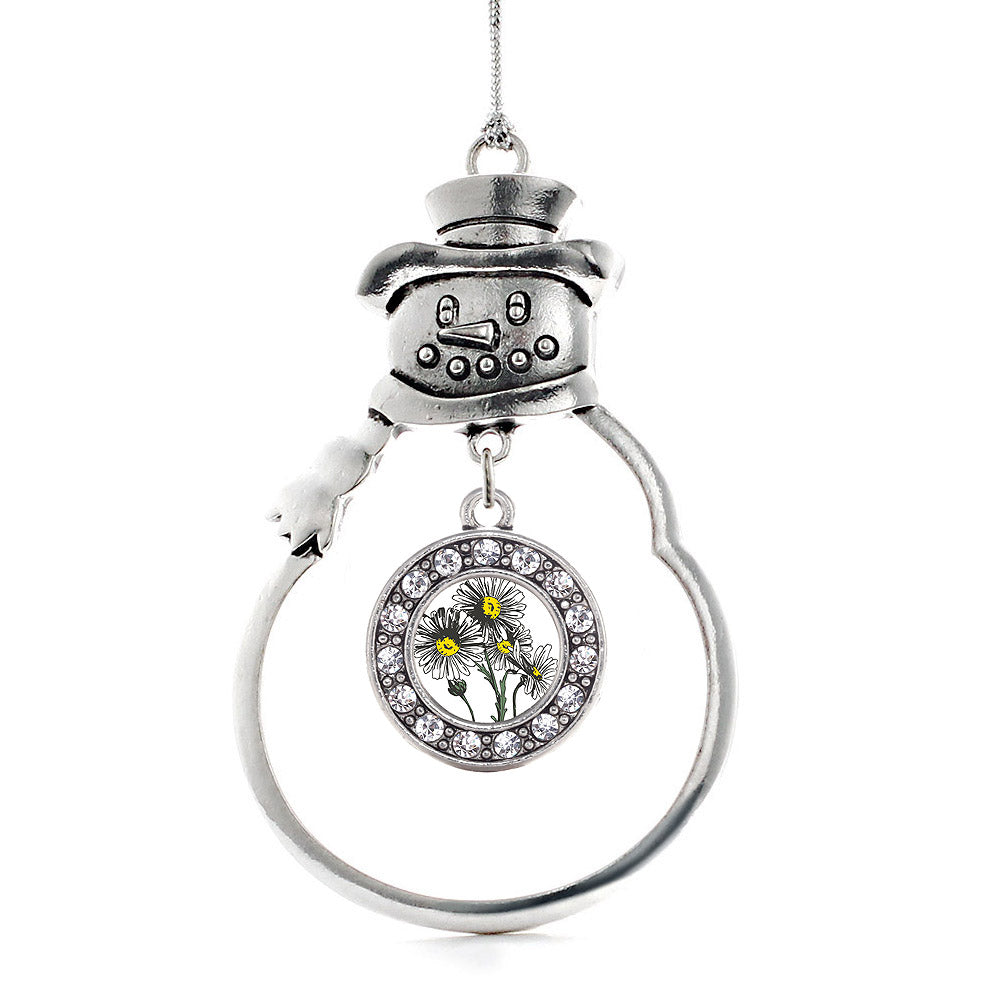 Silver Daisy Flower Circle Charm Snowman Ornament