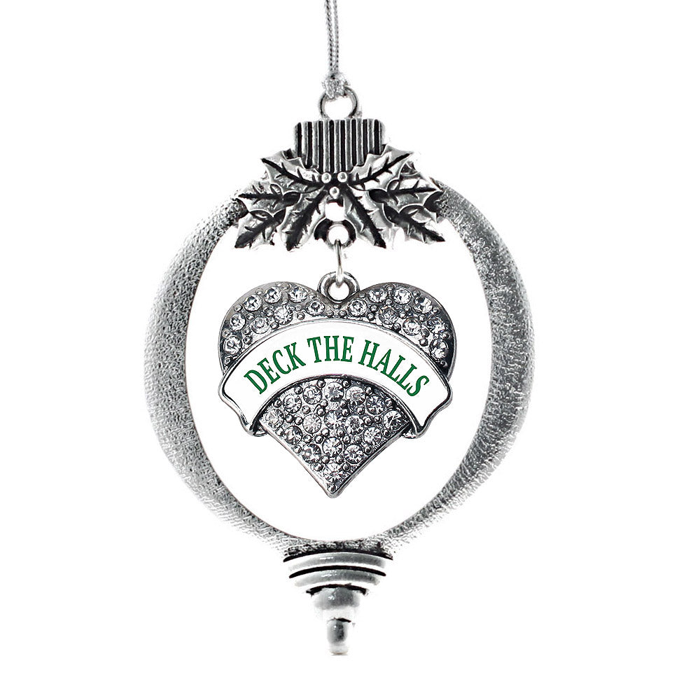Our sparkling holiday ornament, equipped with a stylish silver rope and the Deck the Halls pave heart charm, is crafted from white metal with a silver plated finish and accented with cubic zirconia stones.