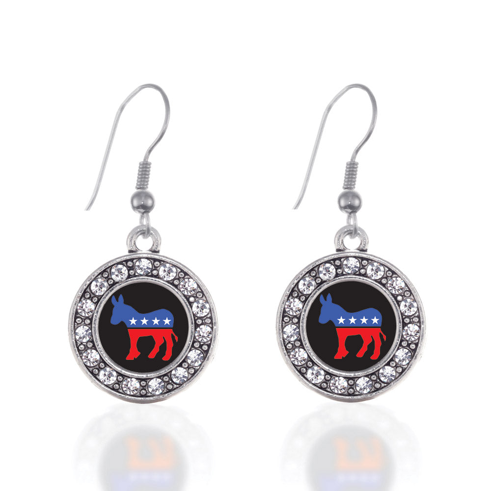 Our sparkling dangle earrings, equipped with a stylish french hook backing and the Democrat circle charm, is crafted from white metal with a silver plated finish and accented with cubic zirconia stones.