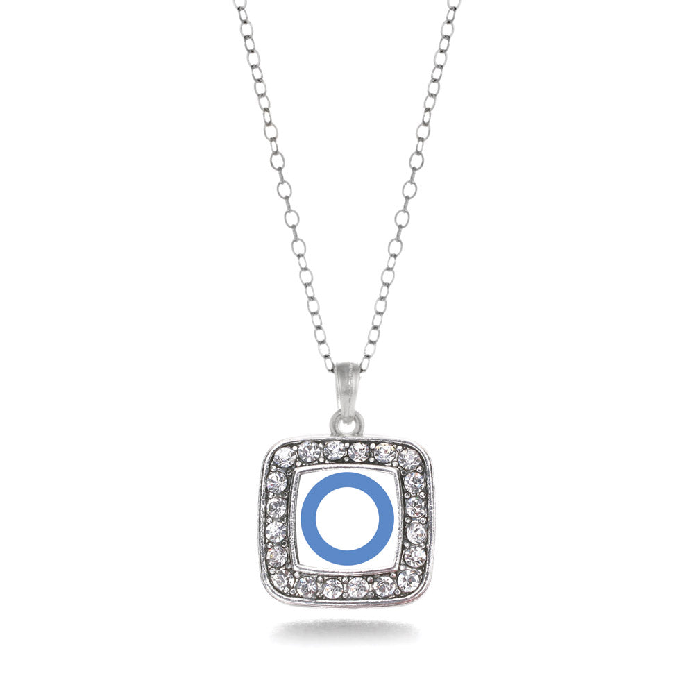 Silver Diabetes Blue Symbol Square Charm Classic Necklace