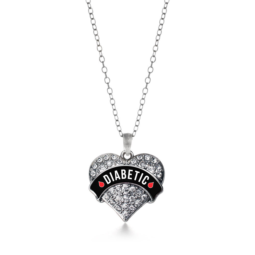Our sparkling classic necklace, equipped with a stylish lobster claw clasp and the Diabetic Medical Alert pave heart charm, is crafted from white metal with a silver plated finish and accented with cubic zirconia stones.