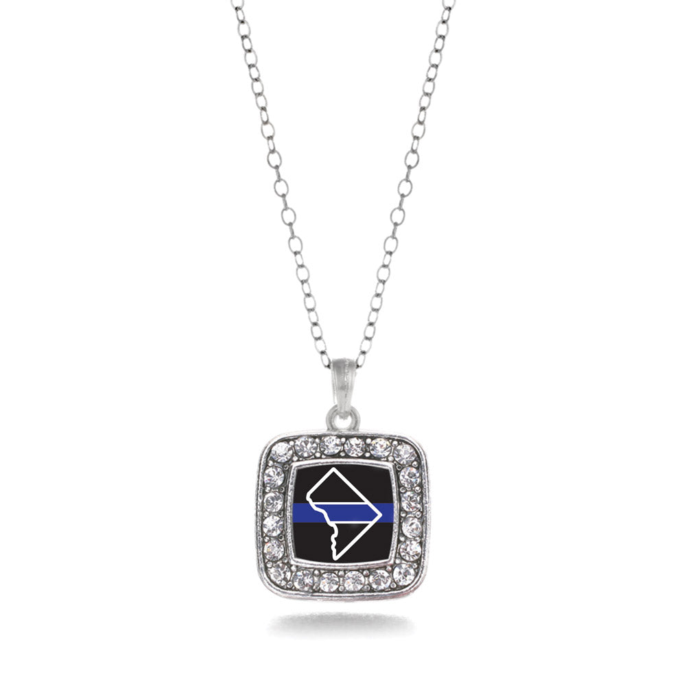 Silver District of Columbia Thin Blue Line Square Charm Classic Necklace
