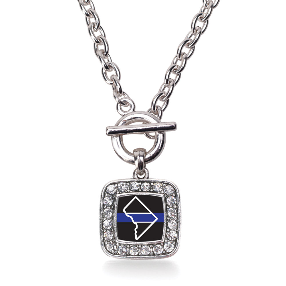 Silver District of Columbia Thin Blue Line Square Charm Toggle Necklace