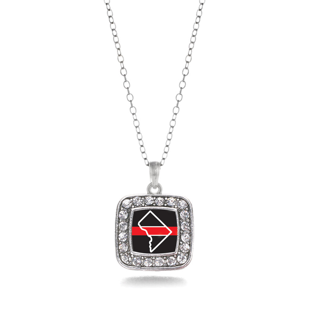 Our sparkling classic necklace, equipped with a stylish lobster claw clasp and the District of Columbia Thin Red Line square charm, is crafted from white metal with a silver plated finish and accented with cubic zirconia stones.
