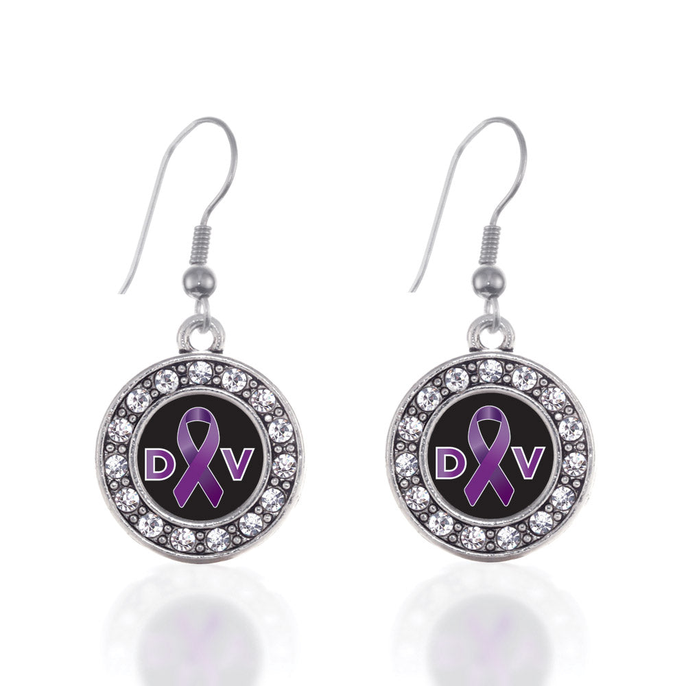 Silver Domestic Violence Support Circle Charm Dangle Earrings