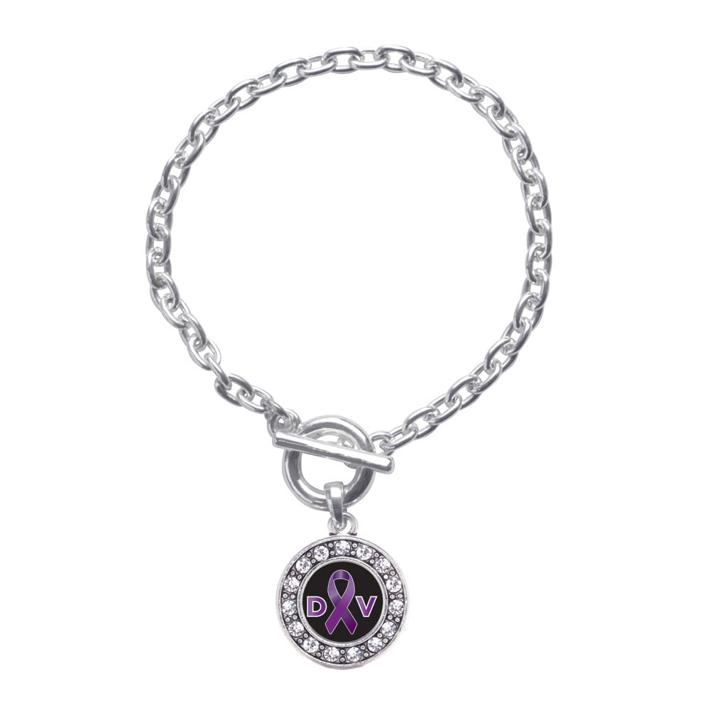 Silver Domestic Violence Support Circle Charm Toggle Bracelet