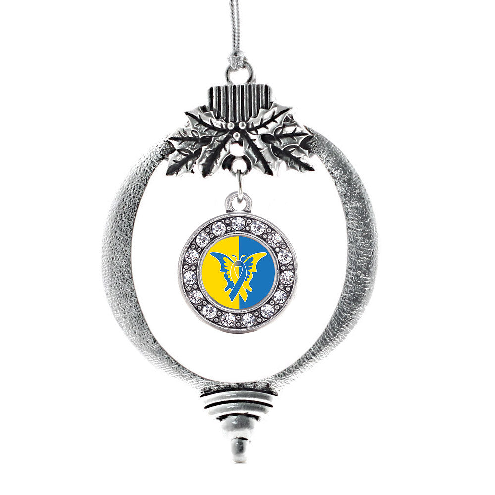 Our sparkling holiday ornament, equipped with a stylish silver rope and the Down Syndrome Awareness circle charm, is crafted from white metal with a silver plated finish and accented with cubic zirconia stones.