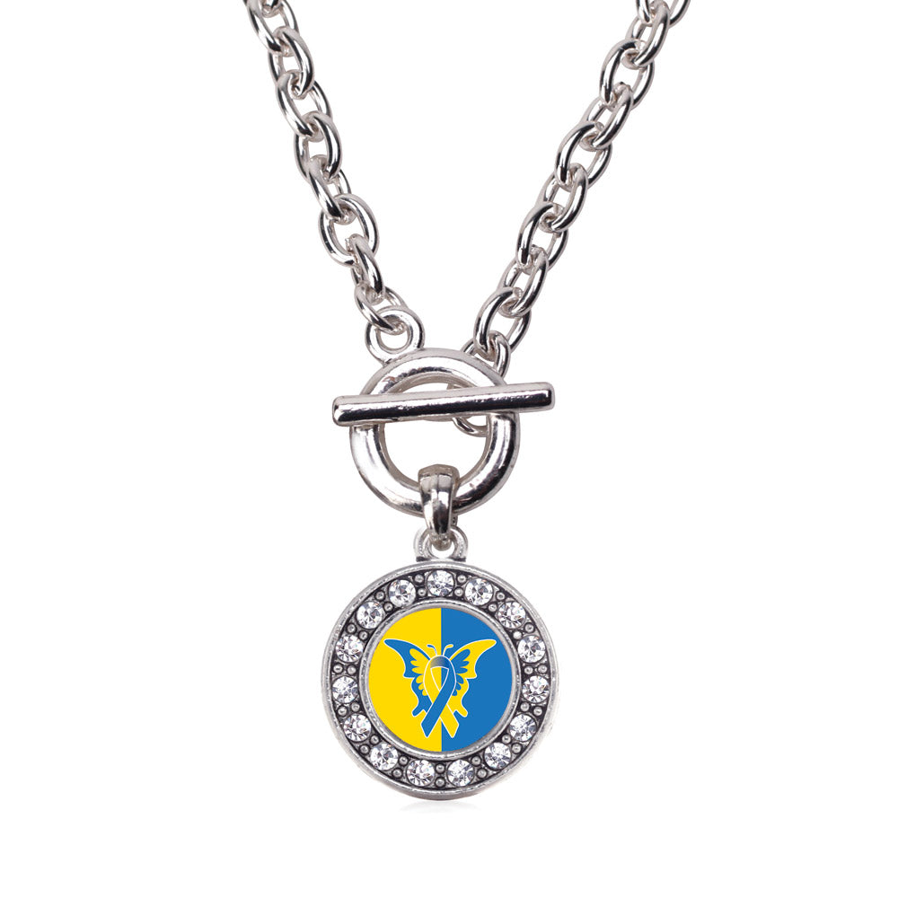Silver Down Syndrome Awareness Circle Charm Toggle Necklace