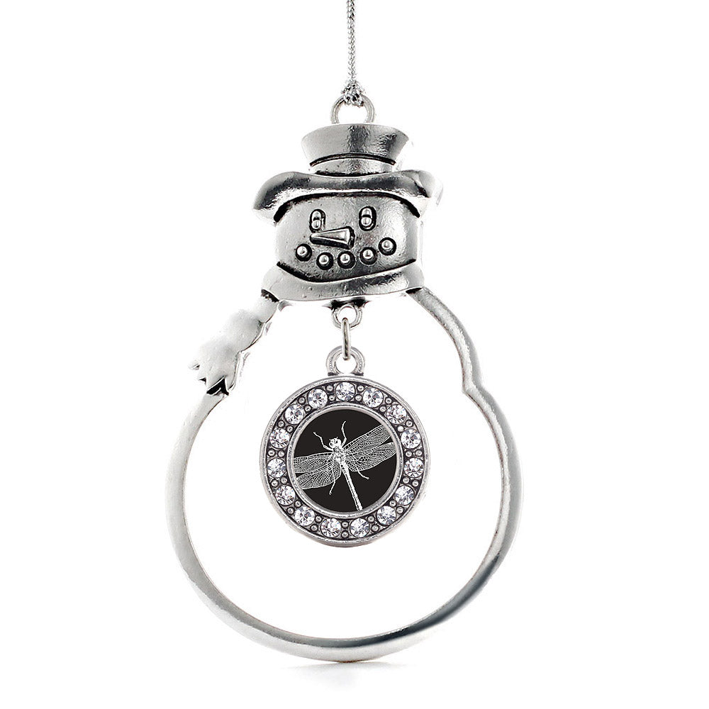 Silver Dragon Fly Circle Charm Snowman Ornament