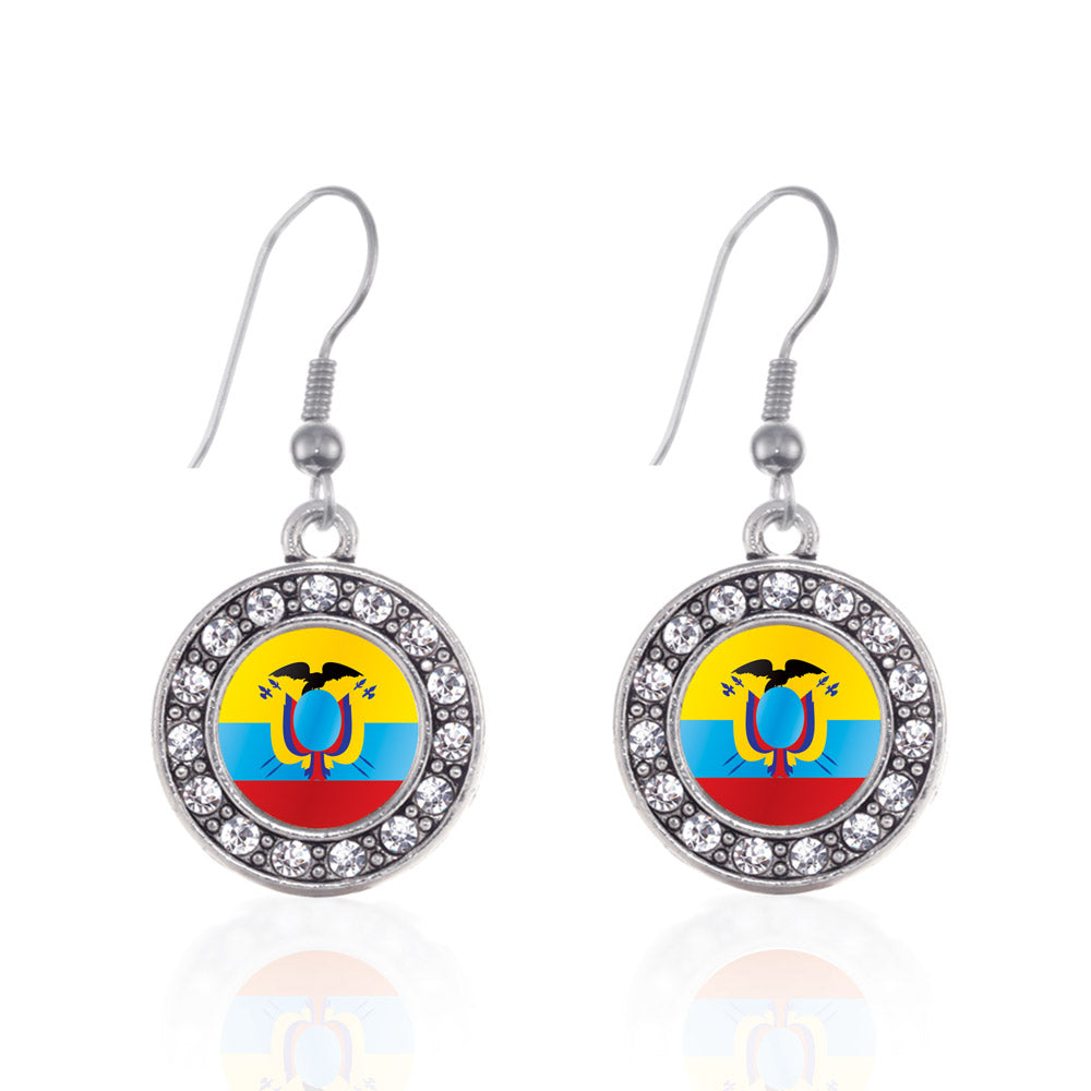 Silver Ecuador Flag Circle Charm Dangle Earrings