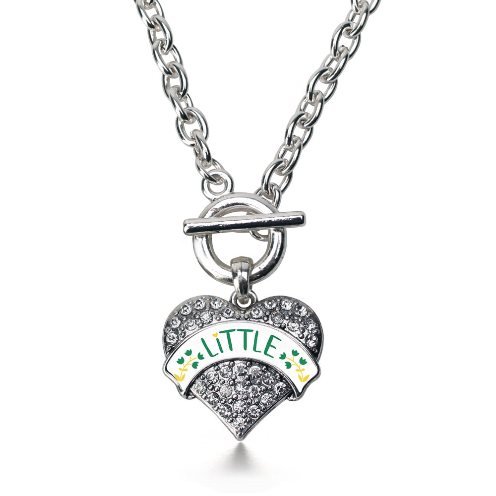 Our sparkling toggle necklace, equipped with a stylish toggle clasp and the Emerald Green and Canary Yellow Little pave heart charm, is crafted from white metal with a silver plated finish and accented with cubic zirconia stones.
