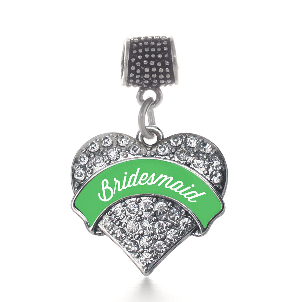 Silver Emerald Green Bridesmaid Pave Heart Memory Charm