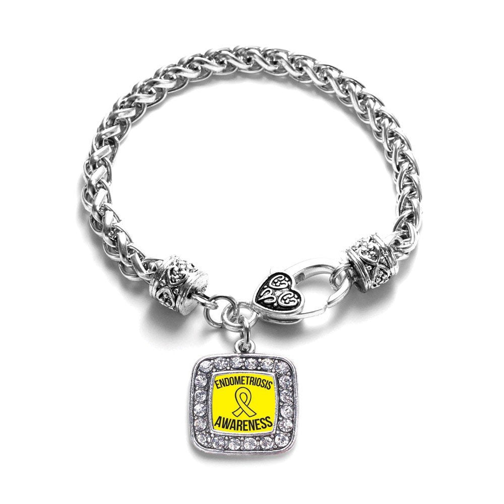 Our sparkling braided bracelet, equipped with a stylish lobster claw clasp and the Endometriosis Support square charm, is crafted from white metal with a silver plated finish and accented with cubic zirconia stones.