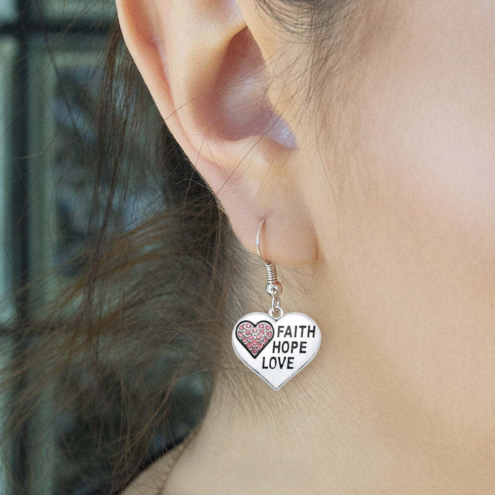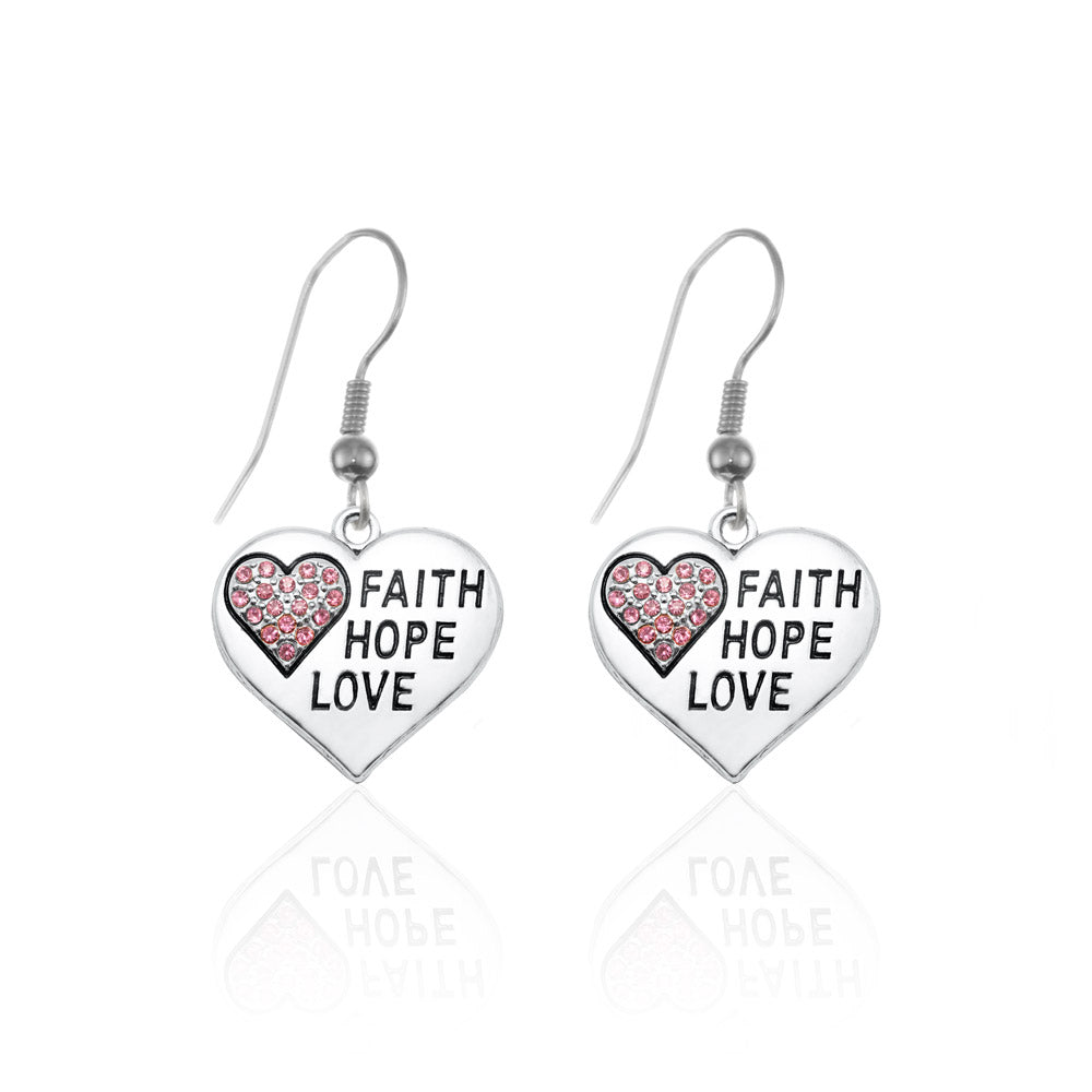 Silver Faith Hope Love Heart Charm Dangle Earrings