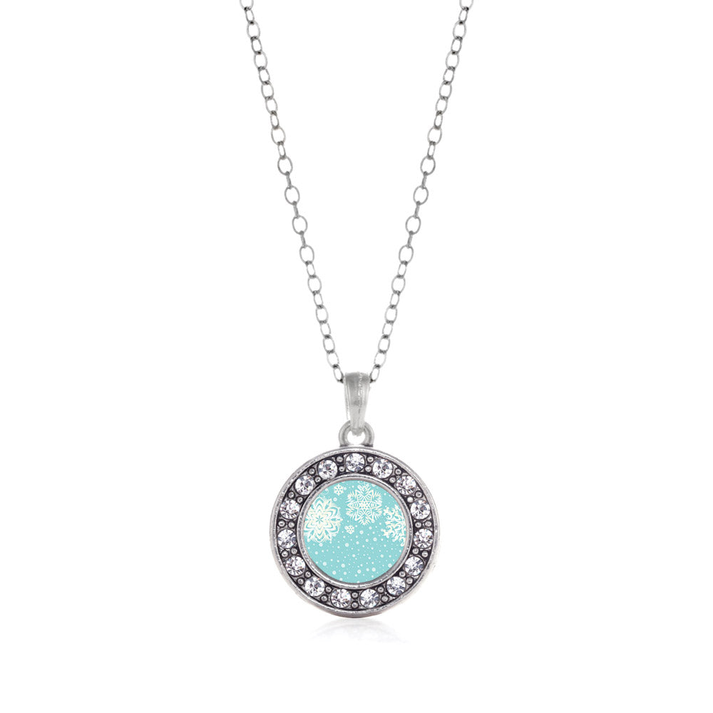 Silver Falling Snowflakes Circle Charm Classic Necklace