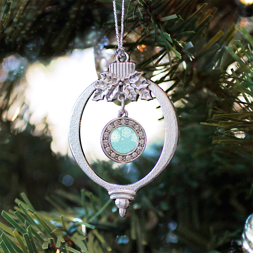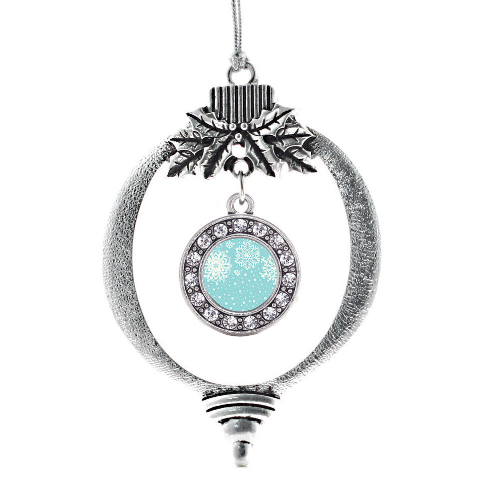 Silver Falling Snowflakes Circle Charm Holiday Ornament