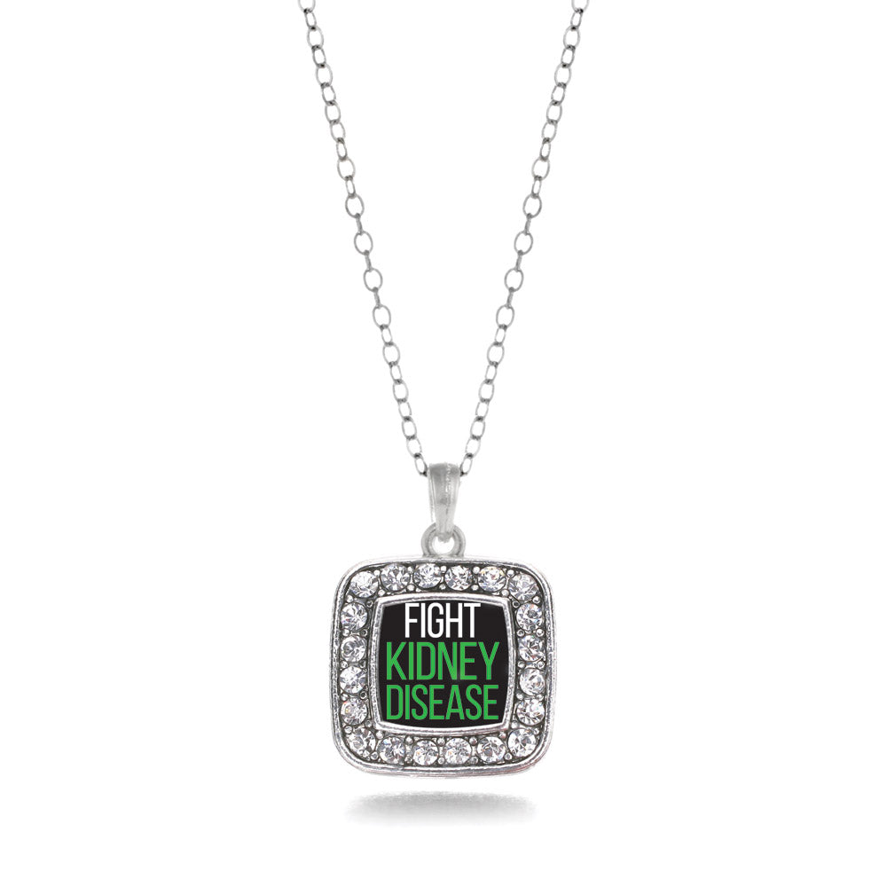 Silver Fight Kidney Disease Square Charm Classic Necklace
