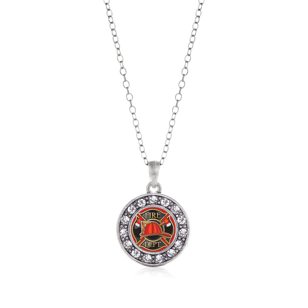 Silver Fire Department Badge Circle Charm Classic Necklace