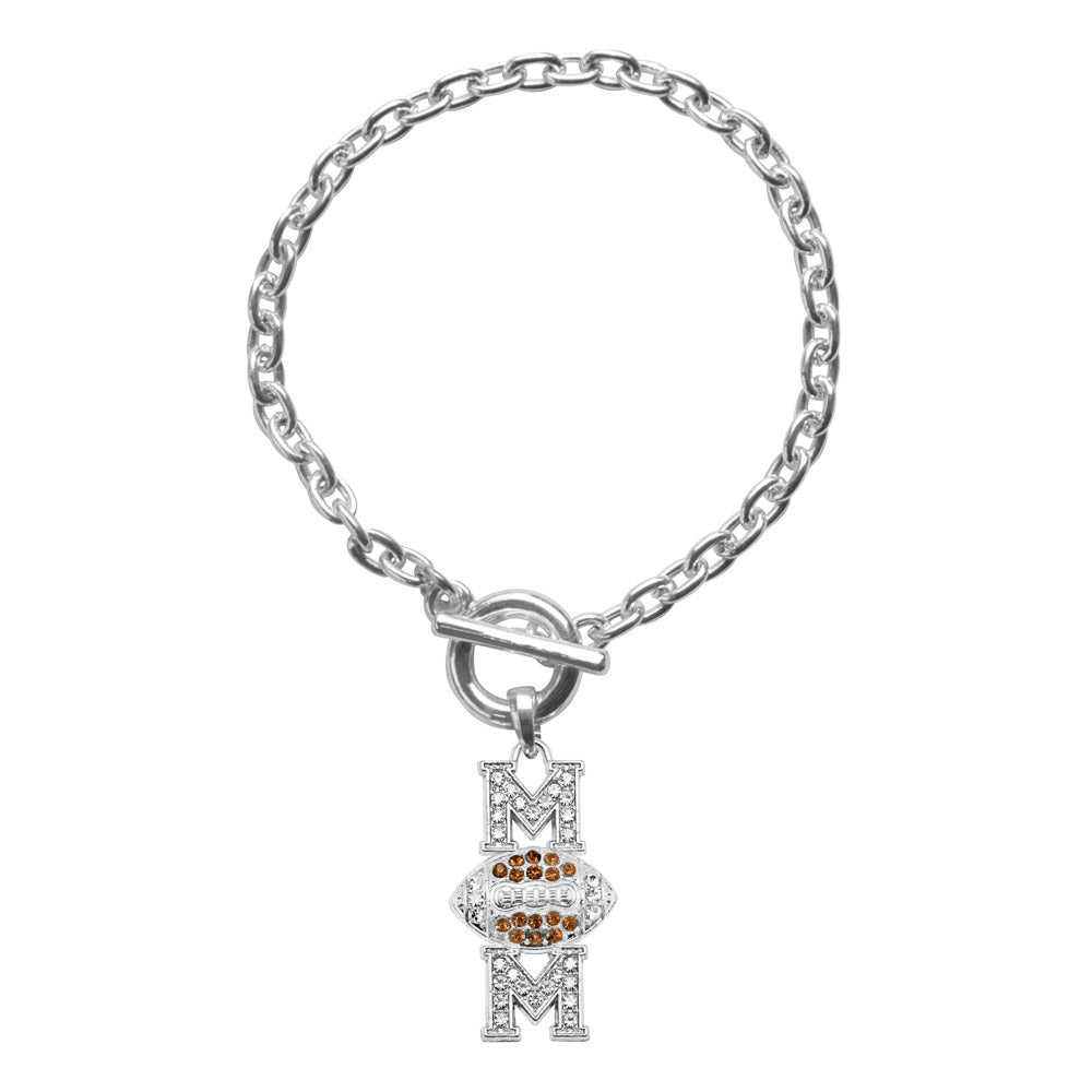 Silver Football Mom Charm Toggle Bracelet