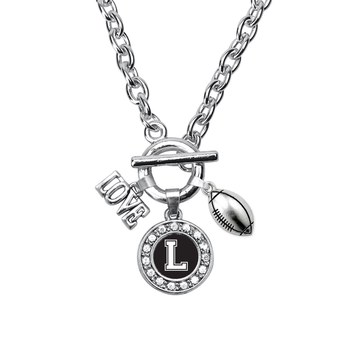Silver Football - Sports Initial L Circle Charm Toggle Necklace