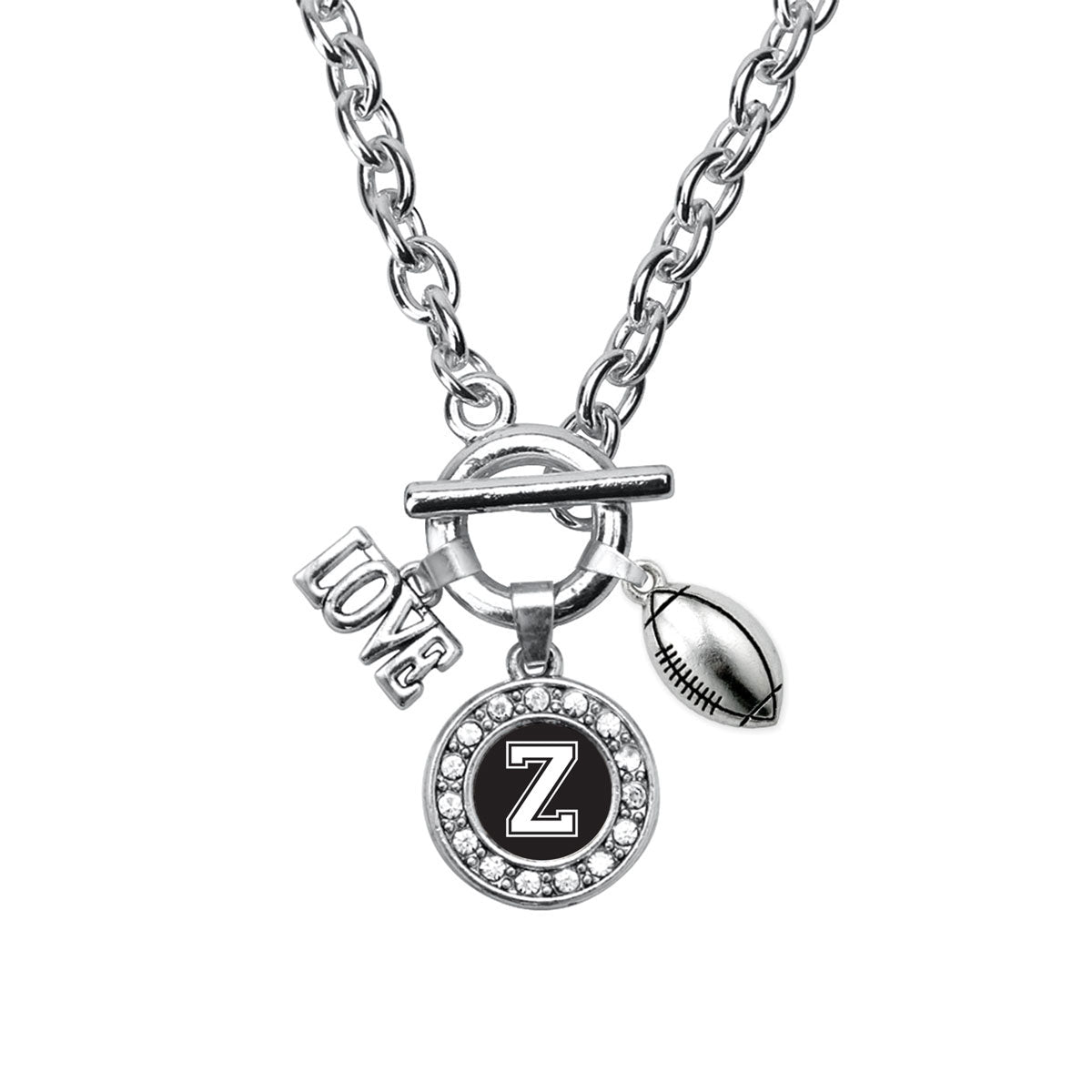 Silver Football - Sports Initial Z Circle Charm Toggle Necklace